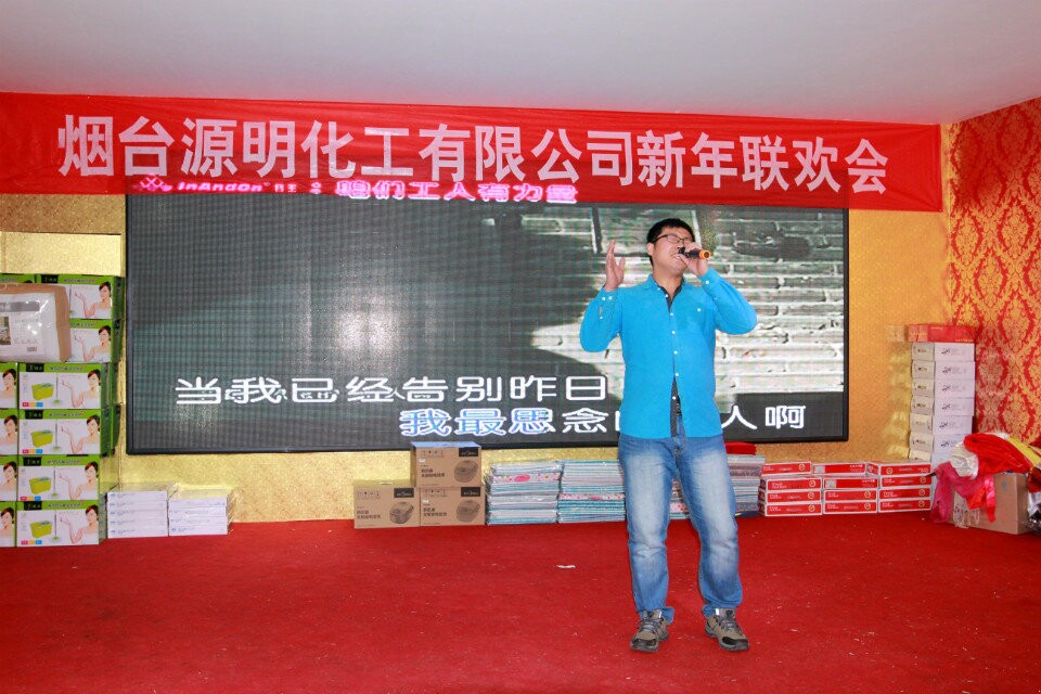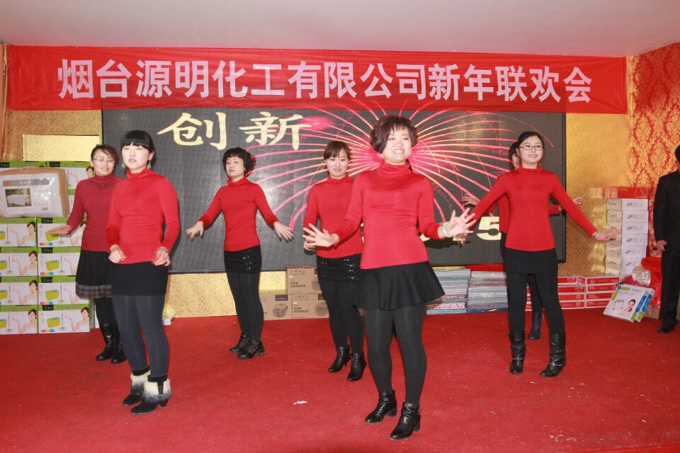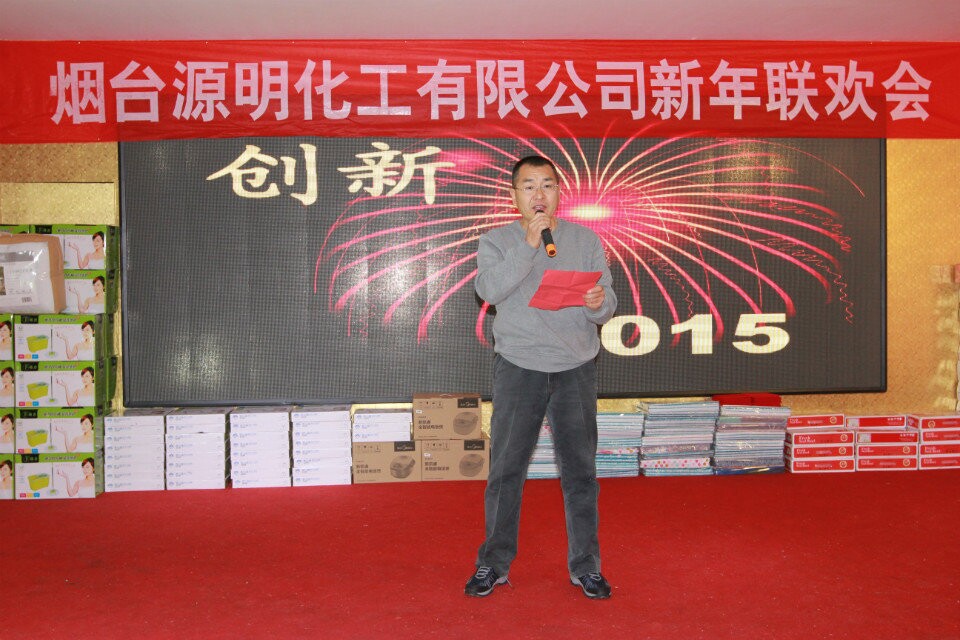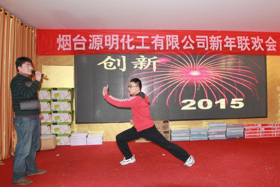 12月31日晚上,悦都酒店二层大厅灯火辉煌,人声鼎沸,洋溢着迎春贺岁、其乐融融的节日气氛。烟台源明化工有限公司举办的以“创新. 2015”为主题的2015年元旦联欢晚会在欢歌笑语中拉开了序幕。晚会持续了近4个小时,共有近20个节目参加了晚会的表演,包括歌舞、脱口秀、武术表演等等,其中抽奖与游戏环节更是给晚会增添了不少乐趣。 晚会伊始,于浩总经理为晚会致辞,充分肯定了公司在2014年取得的成绩,对公司全体员工的辛勤付出表示了衷心的感谢,并勉励大家在2015年再接再厉,在新起点上共创源明化工新篇章。晚会还为公司2014年先进生产(工作)者、优秀中层干部、先进集体进行了颁奖,大家纷纷表示要戒骄戒躁、创新思路、踏实工作,为广大员工起到模范带头作用。为了表达公司对员工兢兢业业、辛勤付出的感恩之情,公司还邀请了员工家属一起参加联欢会,与公司一起分享成功的喜悦。 此次联欢会进一步增强了公司的凝聚力,为公司指明了前进的方向,使广大员工增添了为公司发展贡献力量的信心与动力。 |